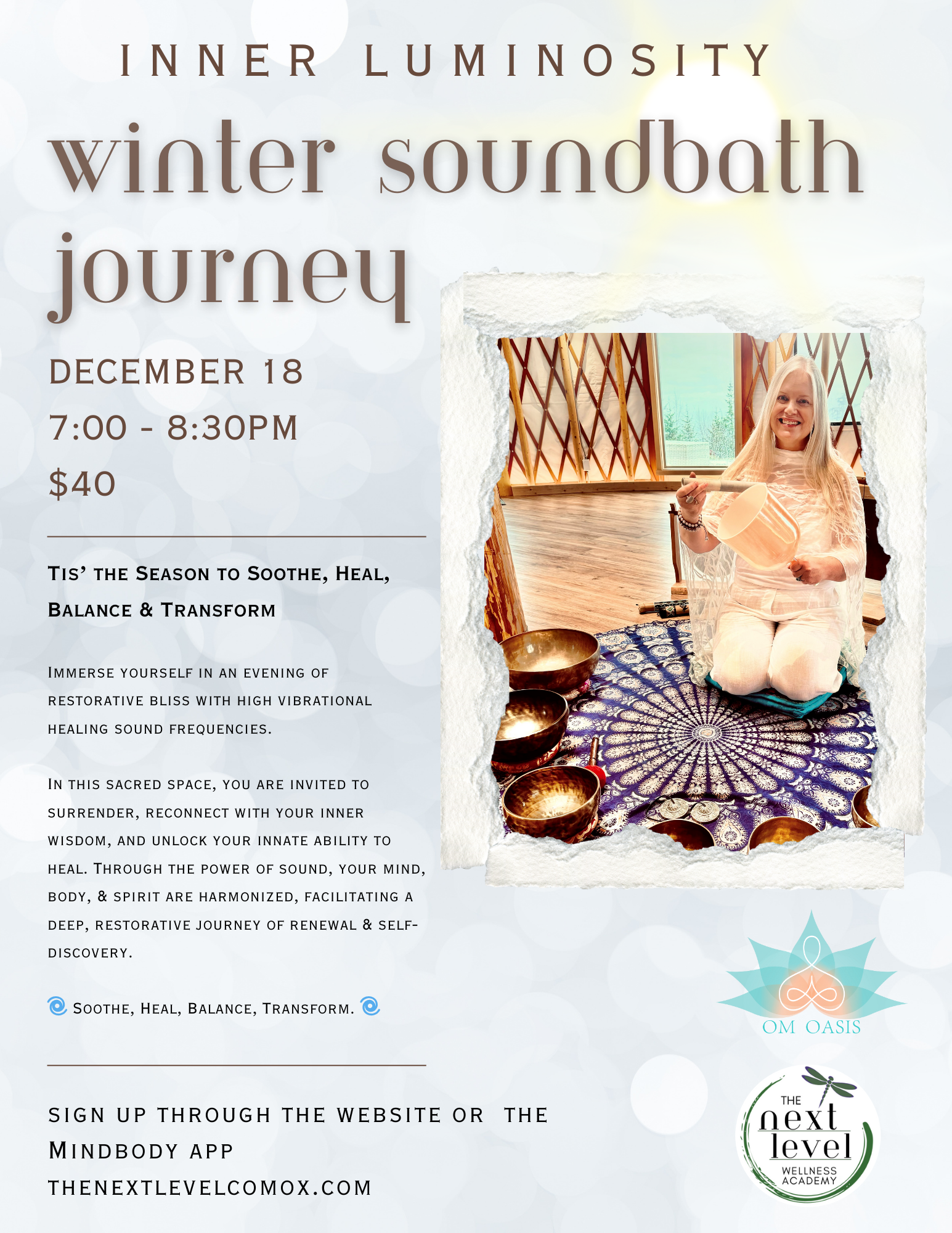 In this sacred space, you are invited to surrender, reconnect with your inner wisdom, and unlock your innate ability to heal. Through the power of sound, your mind, body, & spirit are harmonized, facilitating a deep, restorative journey of renewal & self-discovery.